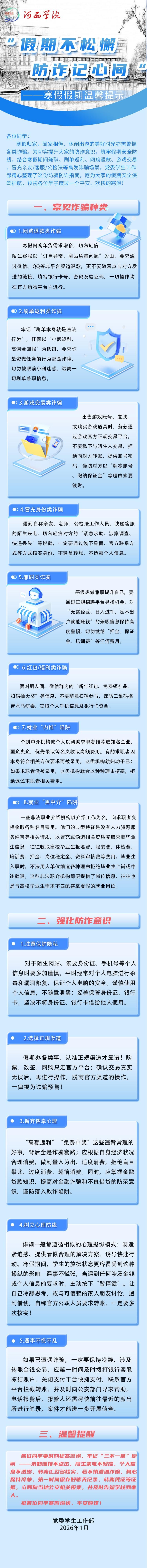 “假期不松懈,防诈记心间” ——寒假假期温馨提示